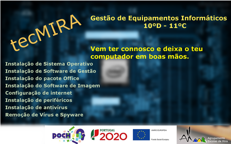 Os alunos do Curso Profissional de Gestão de Equipamentos Informáticos prestam um variado leque de apoio informático, inserido na disciplina de Instalação e Manutenção de Equipamentos Informáticos, na qual a experimentação de situações reais se revela uma mais valia.