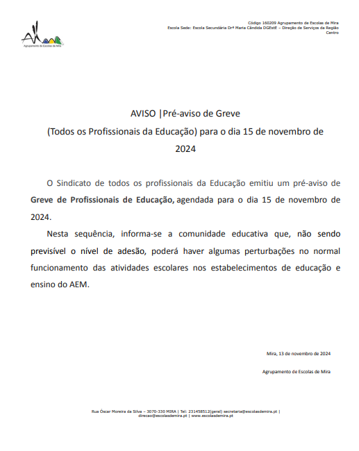 No dia 13 de novembro de 2024, realizou-se a eleição para a nova Associação de Estudantes do Agrupamento de Escolas de Mira, com um total de 581 alunos inscritos para votar. A participação foi significativa, com 494 votos expressos, o que corresponde a uma taxa de 85% de participação.
