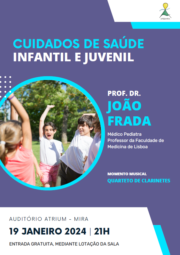 A APEEMIRA irá promover uma sessão de esclarecimentos subordinada ao tema "Cuidados de Saúde - Infantil e Juvenil", ministrada pelo Prof. Doutor João Frada.