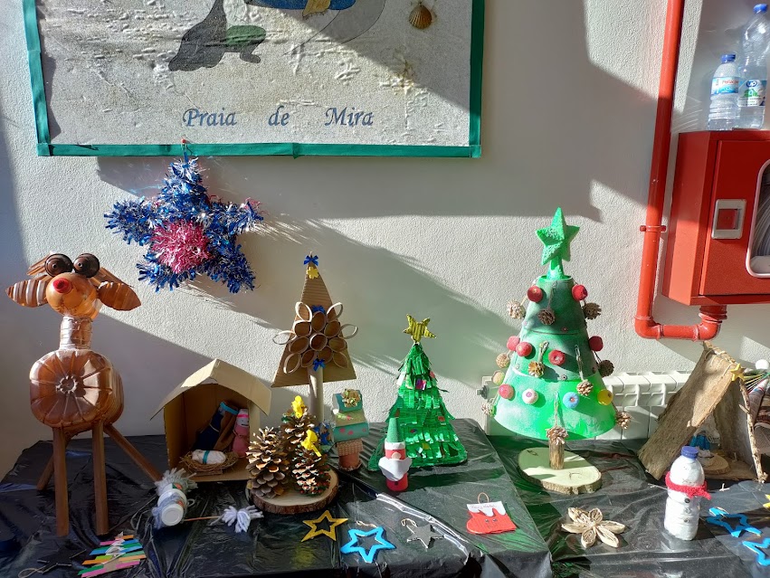 Os Pais e Encarregados de Educação dos alunos da EB de Praia de Mira aceitaram o desafio: construir adereços de Natal para expor no átrio da escola.