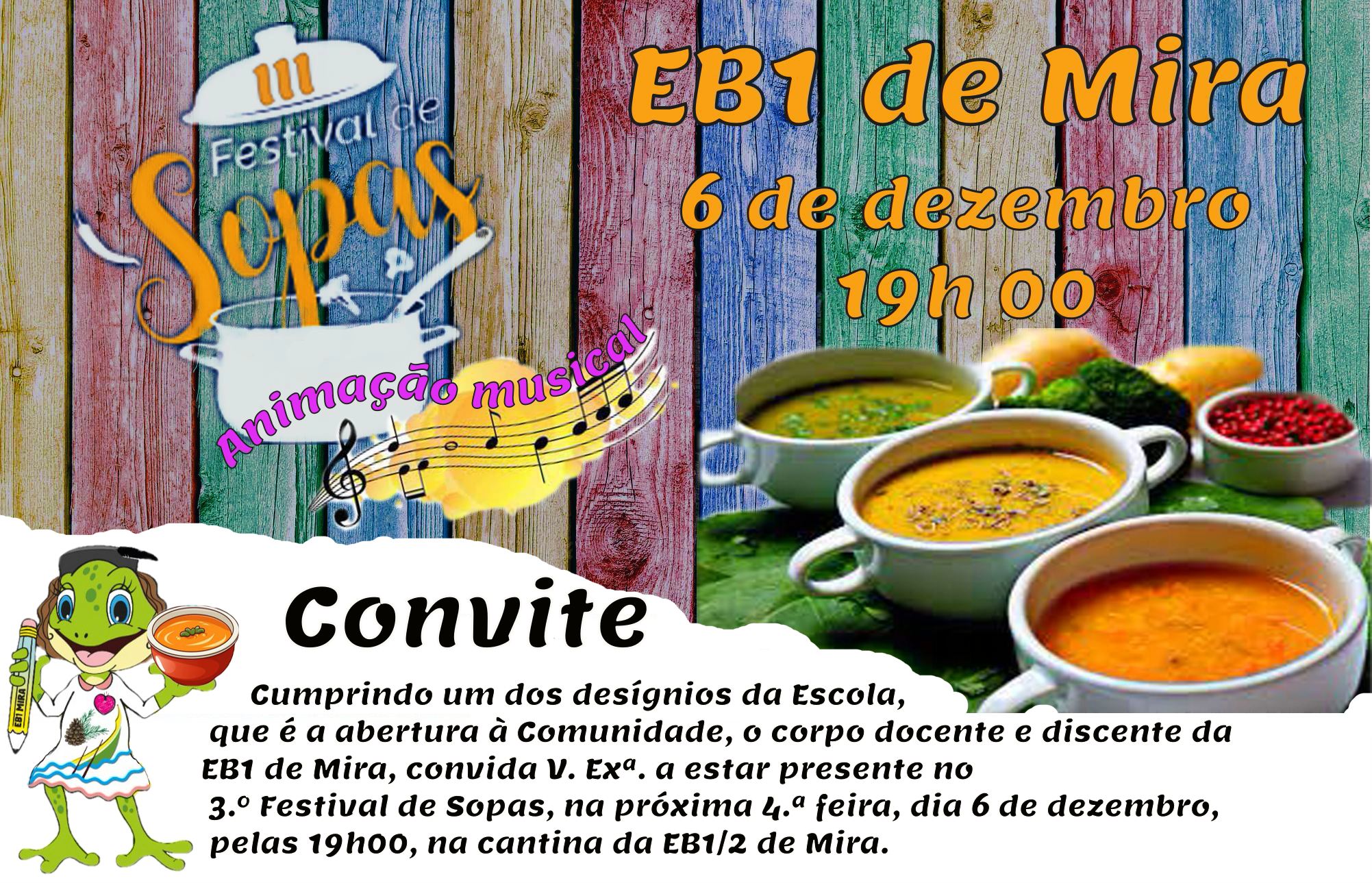 Cumprindo um dos desígnios da Escola que é a abertura à comunidade, o 1.° Ciclo da Escola Básica de Mira, em conjunto com os Encarregados de Educação, organizaram o 3.° Festival de Sopas.