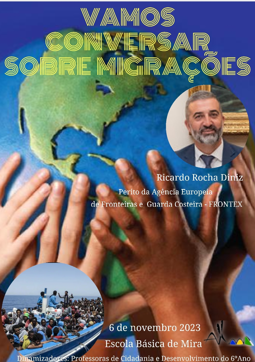 No dia 6 de novembro, no âmbito da temática Interculturalidade – Migrações – da disciplina de Cidadania e Desenvolvimento, decorreu na Escola Básica de Mira uma palestra que teve como convidado Ricardo Rocha Diniz, Perito da Agência Europeia de Fronteiras e Guarda Costeira – FRONTEX, para realizar uma palestra intitulada “Vamos conversar sobre migrações”.