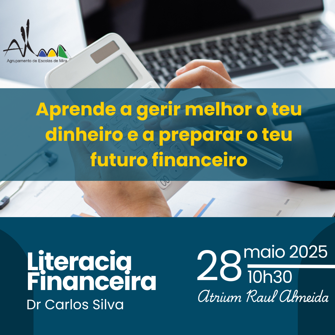 No próximo dia 28 de maio, às 10h30, o Átrio Raul Almeida recebe uma sessão dedicada à Literacia Financeira, orientada pelo Dr.Com o tema “Aprende a gerir melhor o teu dinheiro e a preparar o teu futuro financeiro”, esta pretende iniciativa sensibilizar os alunos do ensino secundário para a importância da gestão consciente dos seus recursos e da preparação para os desafios financeiros do futuro.