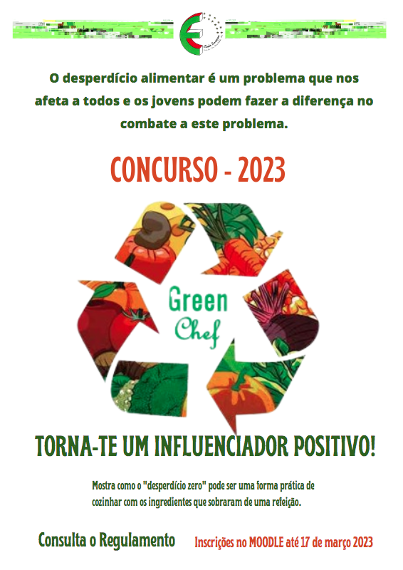 O Clube Europeu convida os jovens a serem “chefs” especialistas na elaboração e confeção de receitas culinárias, a partir de sobras alimentares de refeições.