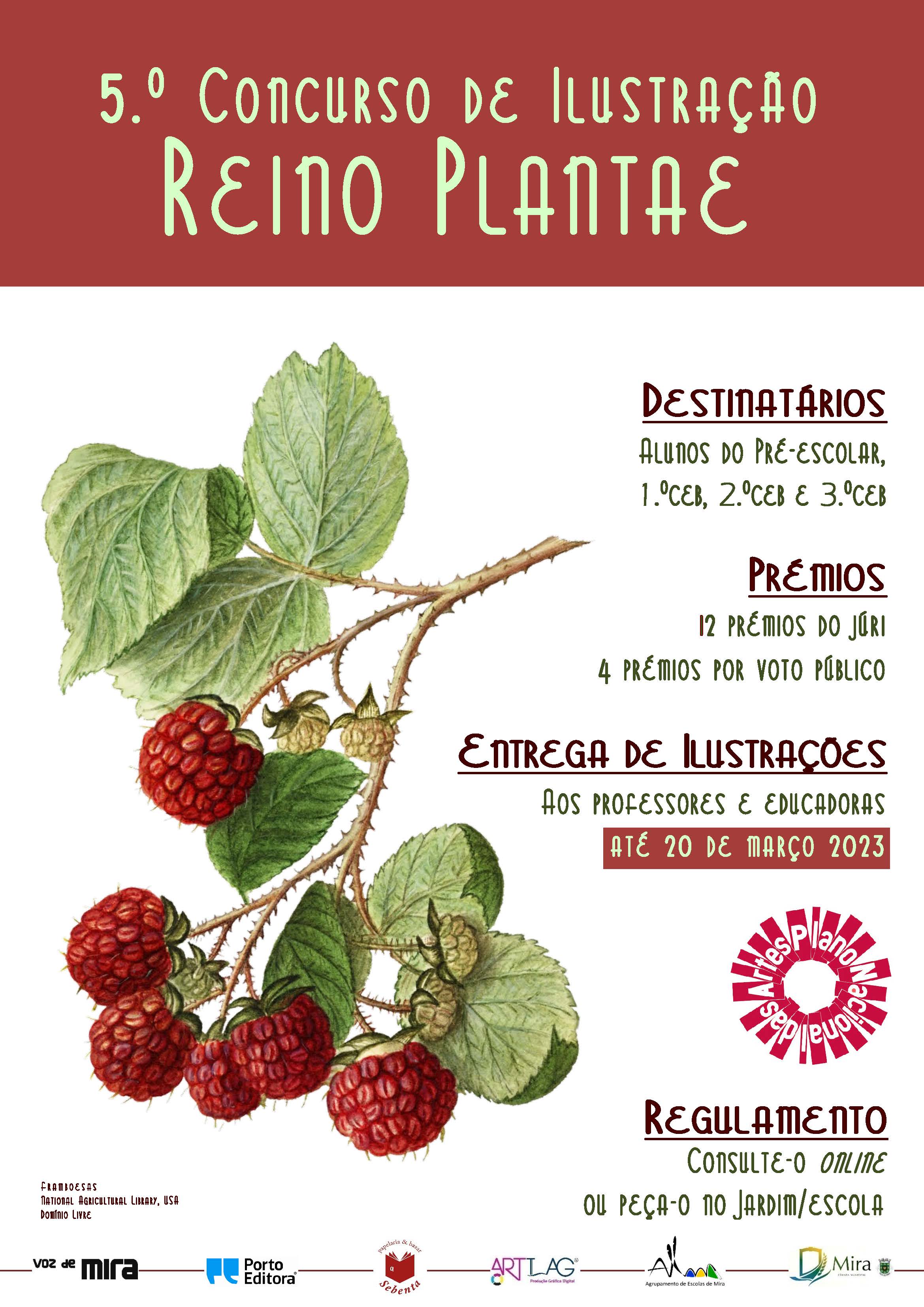 Começou o 5.º Concurso de Ilustração, intitulado “REINO PLANTAE”!Até ao dia 20 de março de 2023, os alunos do pré-escolar, 1.º, 2.º e 3.ºceb são convidados a concorrer, bastando, para o efeito, desenhar árvores, plantas, flores, frutos ou sementes, que representem o real ou apelem ao imaginário, e entregar esses trabalhos aos educadores/professores titulares de turma, Diretores de Turma e professores de Educação Visual.