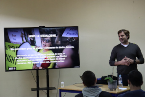 No passado dia 18 de novembro o Dr. Pedro Neto, Diretor Executivo da Amnistia Internacional em Portugal, proferiu uma palestra alusiva ao tema: Direitos Humanos, na Biblioteca da escola sede dirigida aos alunos do 11º ano.