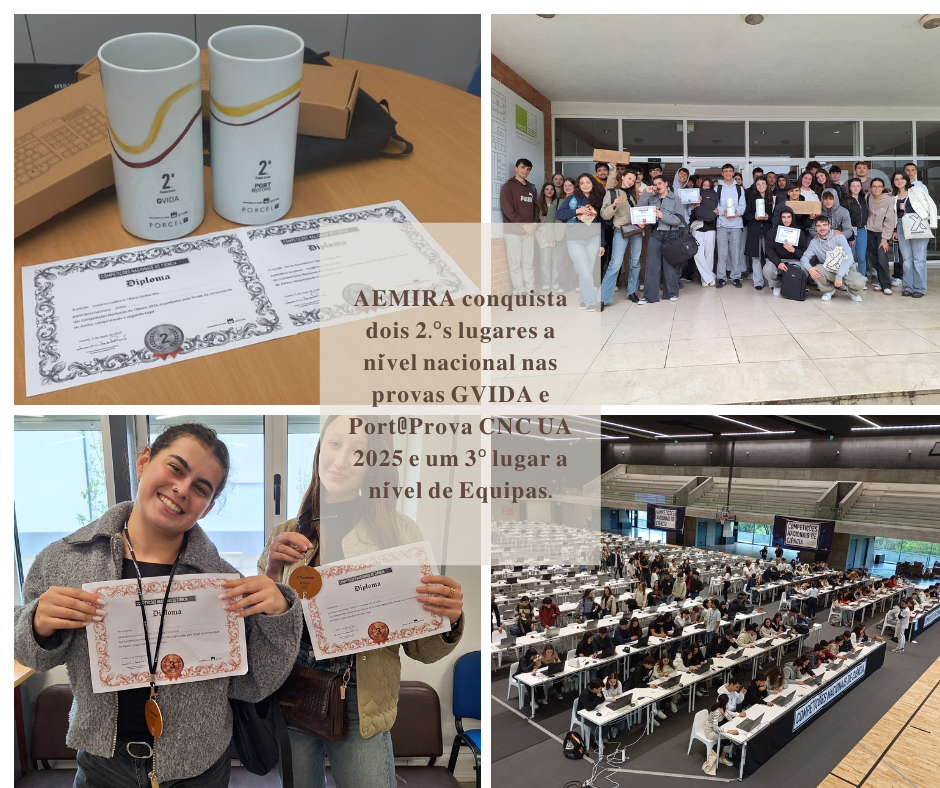 É com enorme alegria e orgulho que partilhamos que o Agrupamento de Escolas de Mira alcançou 𝐝𝐨𝐢𝐬 𝟐.º𝐬 𝐥𝐮𝐠𝐚𝐫𝐞𝐬 𝐚 𝐧𝐢́𝐯𝐞𝐥 𝐧𝐚𝐜𝐢𝐨𝐧𝐚𝐥, 𝐧𝐨 𝐄𝐧𝐬𝐢𝐧𝐨 𝐒𝐞𝐜𝐮𝐧𝐝𝐚́𝐫𝐢𝐨, 𝐧𝐚𝐬 𝐩𝐫𝐨𝐯𝐚𝐬 𝐆𝐕𝐈𝐃𝐀 𝐞 𝐏𝐨𝐫𝐭@𝐏𝐫𝐨𝐯𝐚 𝐂𝐍𝐂 𝐔𝐀 𝟐𝟎𝟐𝟓, integradas nas Competições Nacionais de Ciência 2025, organizadas pelo PMATE da Universidade de Aveiro.Destacamos ainda o excelente 𝟑.º 𝐥𝐮𝐠𝐚𝐫 𝐧𝐚 𝐩𝐫𝐨𝐯𝐚 𝐝𝐞 𝐆𝐞𝐨𝐥𝐨𝐠𝐢𝐚 𝐝𝐨 𝟏𝟐.º 𝐚𝐧𝐨, 𝐜𝐨𝐧𝐪𝐮𝐢𝐬𝐭𝐚𝐝𝐨 𝐩𝐞𝐥𝐚𝐬 𝐚𝐥𝐮𝐧𝐚𝐬 𝐎𝐥𝐠𝐚 𝐀𝐥𝐜𝐚𝐢𝐝𝐞 𝐞 𝐈𝐧𝐞̂𝐬 𝐋𝐨𝐮𝐫𝐞𝐧𝐜̧𝐨. Um resultado brilhante que muito nos orgulha!𝐏𝐚𝐫𝐚𝐛𝐞́𝐧𝐬 𝐚 𝐭𝐨𝐝𝐨𝐬 𝐨𝐬 𝐚𝐥𝐮𝐧𝐨𝐬 𝐪𝐮𝐞 𝐩𝐚𝐫𝐭𝐢𝐜𝐢𝐩𝐚𝐫𝐚𝐦 – o vosso empenho, dedicação e espírito de equipa são verdadeiramente inspiradores! Um agradecimento muito especial aos professores que acompanharam e orientaram os nossos alunos com tanta entrega e profissionalismo. Estes resultados refletem o vosso trabalho e a vossa paixão por ensinar.