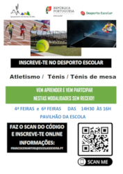 Estão abertas as inscrições para o Desporto Escolar, nas modalidades de Atletismo, Ténis e Ténis de Mesa.