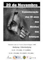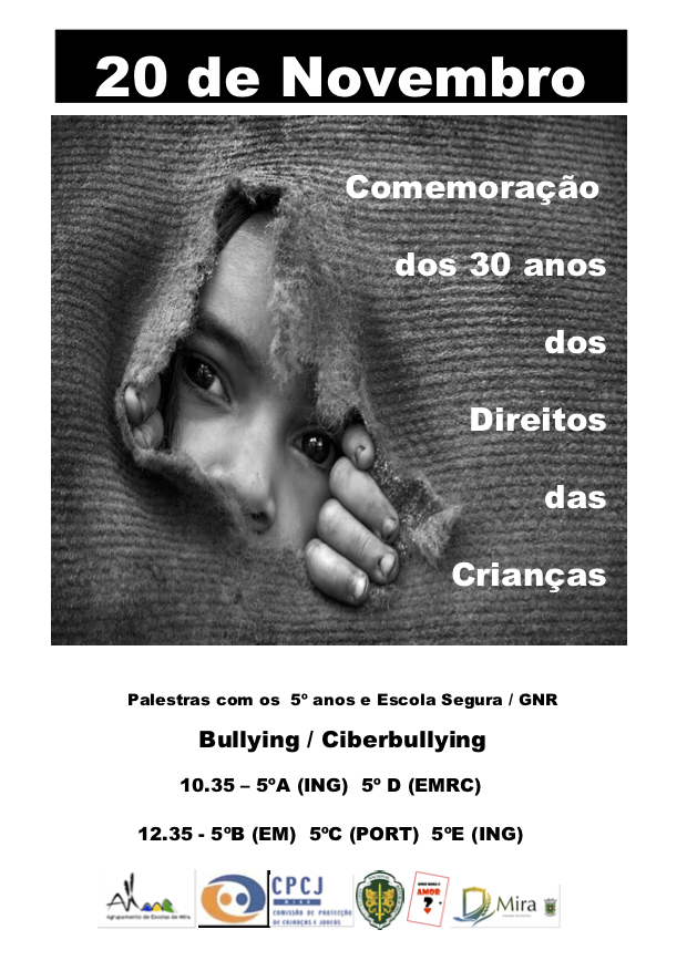 No âmbito do projeto "Onde mora o Amor?" e com todos os 5ºanos do Agrupamento de Escolas de Mira e Agentes da Escola Segura/GNR a comunicação vai decorrer na Biblioteca da E.B.2 de Mira. Vamos assinalar esta data importante e abordar os Direitos das Crianças e outros assuntos como o Bullying /Ciberbullying que nunca é demais falar.