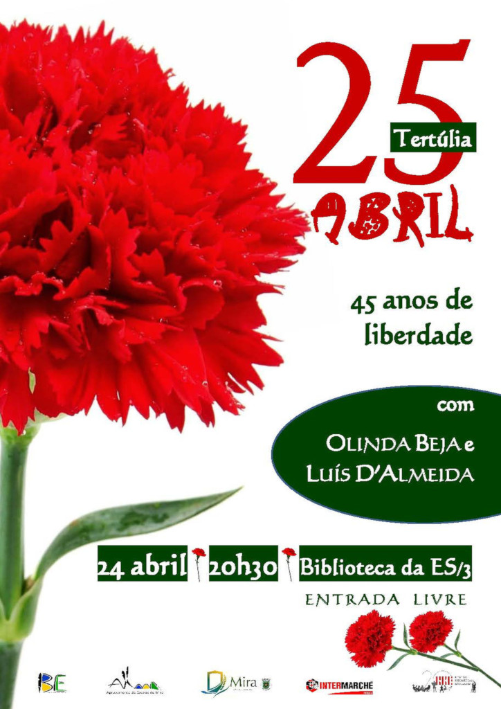No dia 24 de abril, pelas 20h30, na Biblioteca da ES/3 Dr.ª Maria Cândida, terá lugar uma tertúlia evocativa dos 45 anos do 25 de abril de 1974, em toada africana, pela mão de Olinda Beja e Luís D’Almeida.