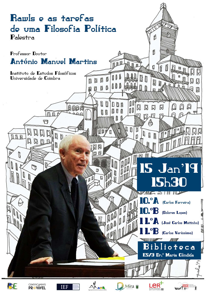 No âmbito do projeto “Cientificamente Provável”, em que as Bibliotecas Escolares do Agrupamento de Escolas de Mira celebraram protocolos de colaboração com várias unidades de investigação da Universidade de Coimbra, teremos o gosto de receber no dia 15 de janeiro, pelas 15h30, o Professor Doutor António Manuel Martins, que virá proferir a palestra “Rawls e as tarefas de uma filosofia política”, para as turmas de 10.º e 11.ºano.