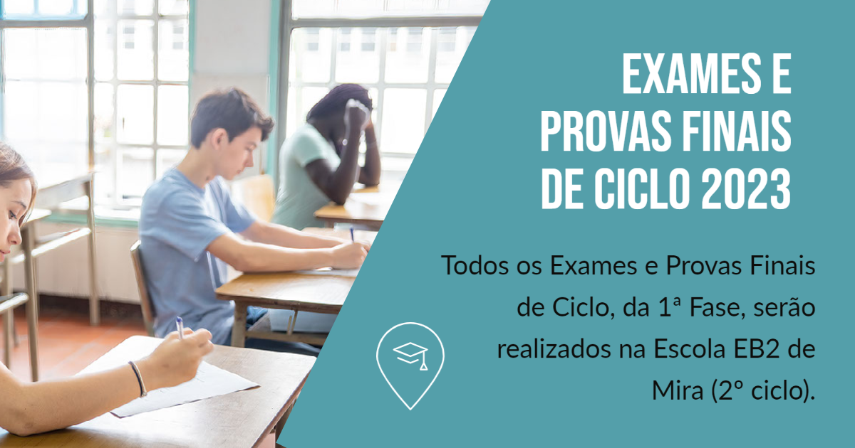 Todos os exames e Provas Finais de Ciclo, da 1ª Fase, serão realizados na Escola EB 2 de Mira (2º ciclo).