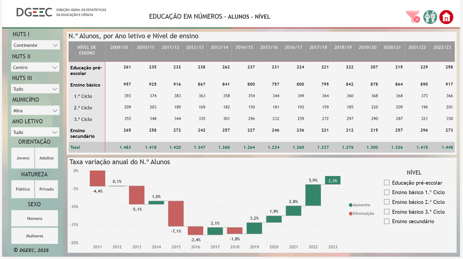 Fonte: site da DGEEC ( https://www.dgeec.mec.pt/ ), onde é possível realizar outros tipos de pesquisa na opção "Educação em Números" .
