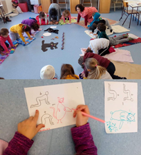 As sessões de ioga desta semana versaram as diferentes maneiras de ver a realidade. Partindo do livro "Todos eles viram um gato", de Brendan Wenzel, praticámos as posturas alusivas à história e fizemos o desenho de um gato associado ao desenho esquemático da postura em ioga, para iniciar a interação com a família sobre as práticas.