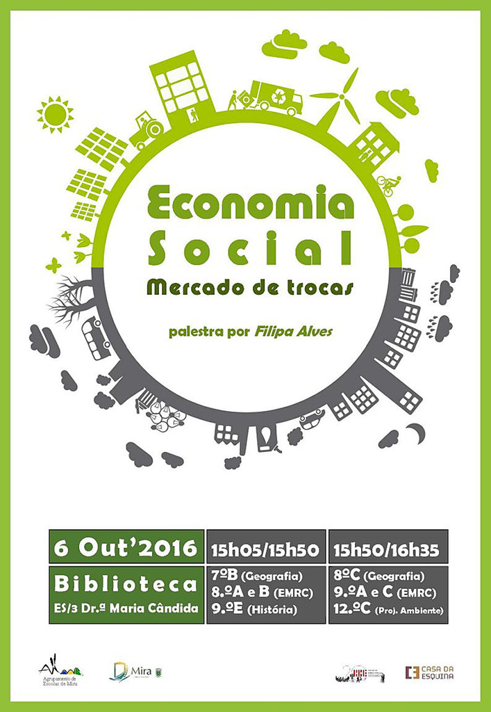 O novo projeto "Ser sustentável", desenvolvido numa parceria da disciplina de Educação Moral e Religiosa Católica com as Bibliotecas Escolares do Agrupamento de Escolas de Mira, vai promover, no dia 6 de outubro, na Biblioteca da ES/3 Dr.ª Maria Cândida, duas palestras sobre o conceito de mercado de trocas, para seis turmas de 7.º, 8. 9.º e 12.ºano.