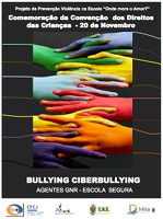 Neste dia 20 de Novembro - Dia Internacional dos Direitos da Criança, no âmbito do projeto "Onde mora o Amor?" pretende-se com a visita dos Agentes da GNR Escola Segura, falar com todas as turmas do 7º ano de escolariedade sobre o tema “Bullying / Ciberbullying”.