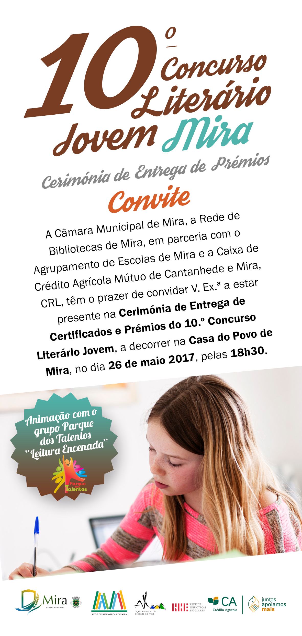 Na próxima sexta-feira, dia 26 de maio, pelas 18h30, na Casa do Povo de Mira, terá lugar a Cerimónia pública de entrega de diplomas aos participantes e prémios aos vencedores do certame.