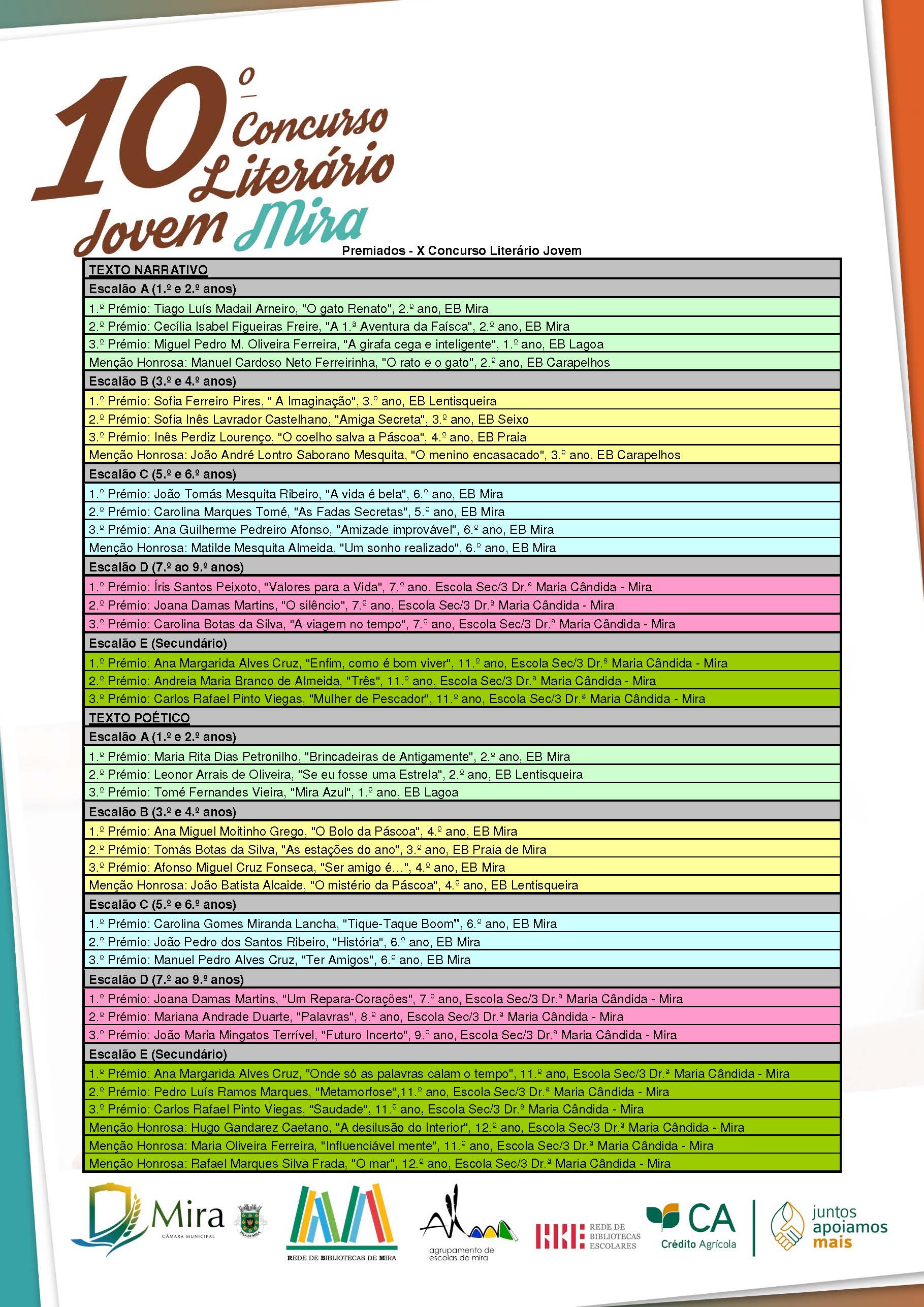 10.º Concurso Literário Jovem – Premiados