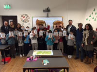 Os cerca de 40 alunos das turmas do 3º e 4º anos da Escola Básica da Praia de Mira e da Lagoa receberam, no dia 24 de janeiro, a visita do Gaspar e da Inês, as mascotes do programa “Empreendedorismo, nas Escolas da Região de Coimbra”.