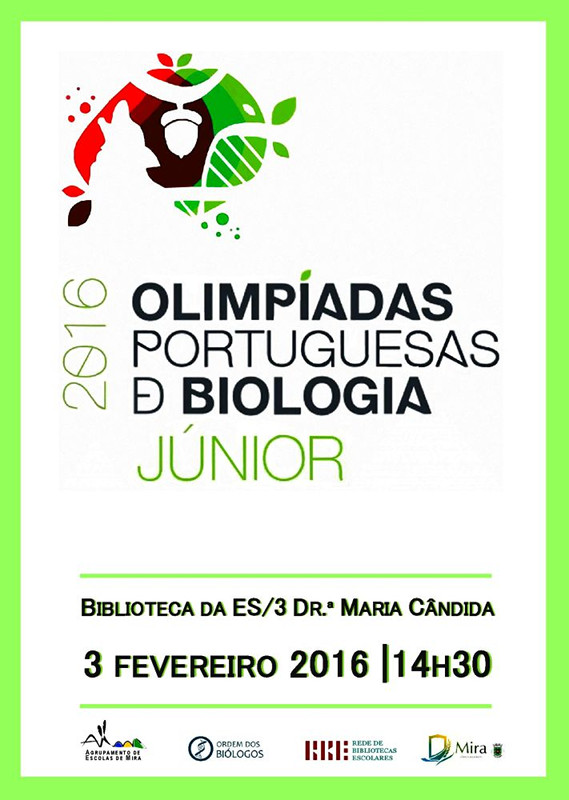 Terá lugar na Biblioteca da ES/3 Dr.ª Maria Cândida, no próximo dia 3 de fevereiro, pelas 14h30, a 1.ª eliminatória das Olimpíadas Portuguesas de Biologia Júnior, coordenadas pelo elemento da equipa BE, professora Custódia Dias.