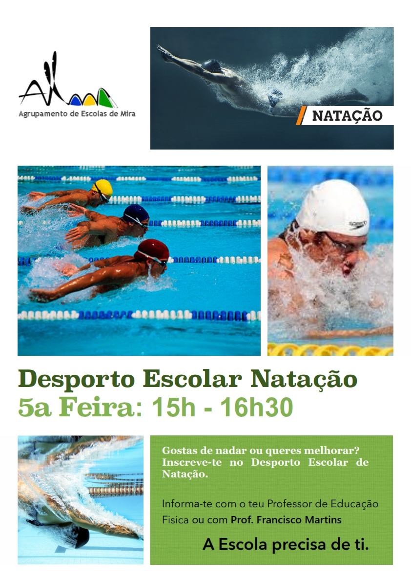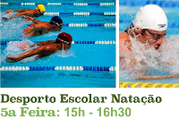 Inscreve-te no Desporto Escolar de Natação. Os treinos realizam-se às quintas feiras das 15h às 16h30.