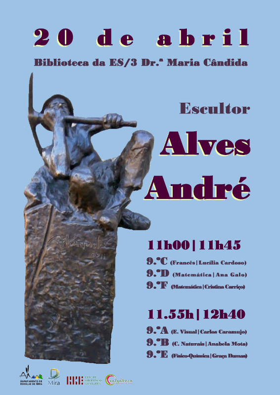 O escultor Alves André estará na Biblioteca Escolar da ES/3 Dr.ª Maria Cândida no próximo dia 20 de abril, para um encontro especial com as turmas do 9.ºano.