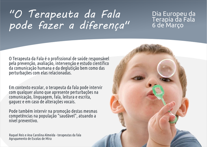 O Terapeuta da Fala é o profissional de saúde responsável pela prevenção, avaliação, intervenção e estudo científico da comunicação humana e da deglutição bem como das perturbações com elas relacionadas.
