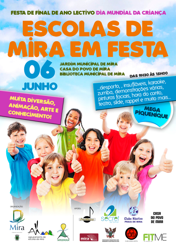 No dia 6 de Junho das 9h30 às 15h, o Agrupamento de Escolas de Mira estará em festa com a celebração do final do ano letivo e do dia mundial da criança.