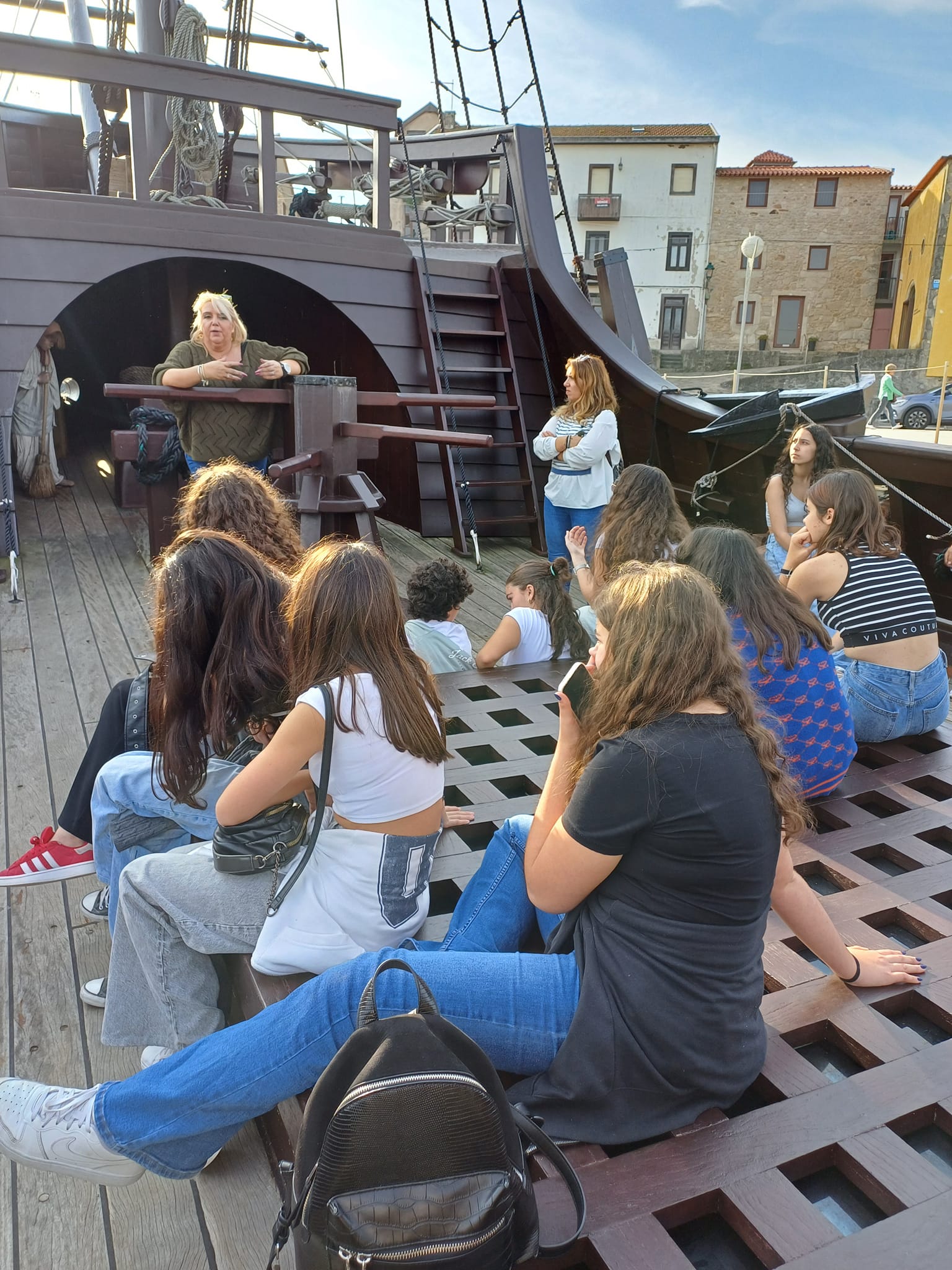 No passado dia 8 de novembro, os alunos do 8.º ano participaram numa visita de estudo a Vila do Conde, no âmbito das disciplinas de História, Geografia, Ciências Naturais e Educação Visual. Entrámos a bordo de uma Nau Quinhentista, passámos no Museu da Alfândega Régia, tentámos tecer algo no Museu das Rendas de Bilros, vimos de fora a Igreja Matriz, passeámos sob os arcos majestosos do Aqueduto e “navegámos” entre algas de várias cores no Centro de Monitorização e Interpretação Ambiental (CMIA). Foi uma jornada de aprendizagens à antiga. Assim vale a pena aprender… e ensinar!