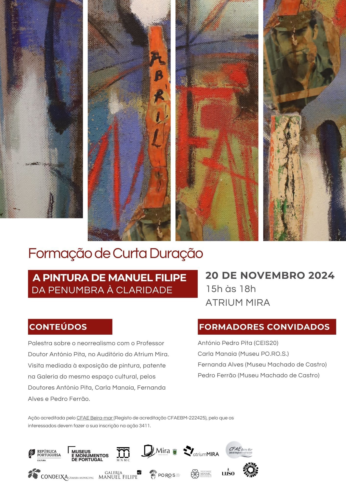 No dia 20 de novembro, das 15h às 18h, decorrerá, no Auditório e na Galeria do Atrium, uma formação dedicada à figura e à obra do pintor Manuel Filipe.