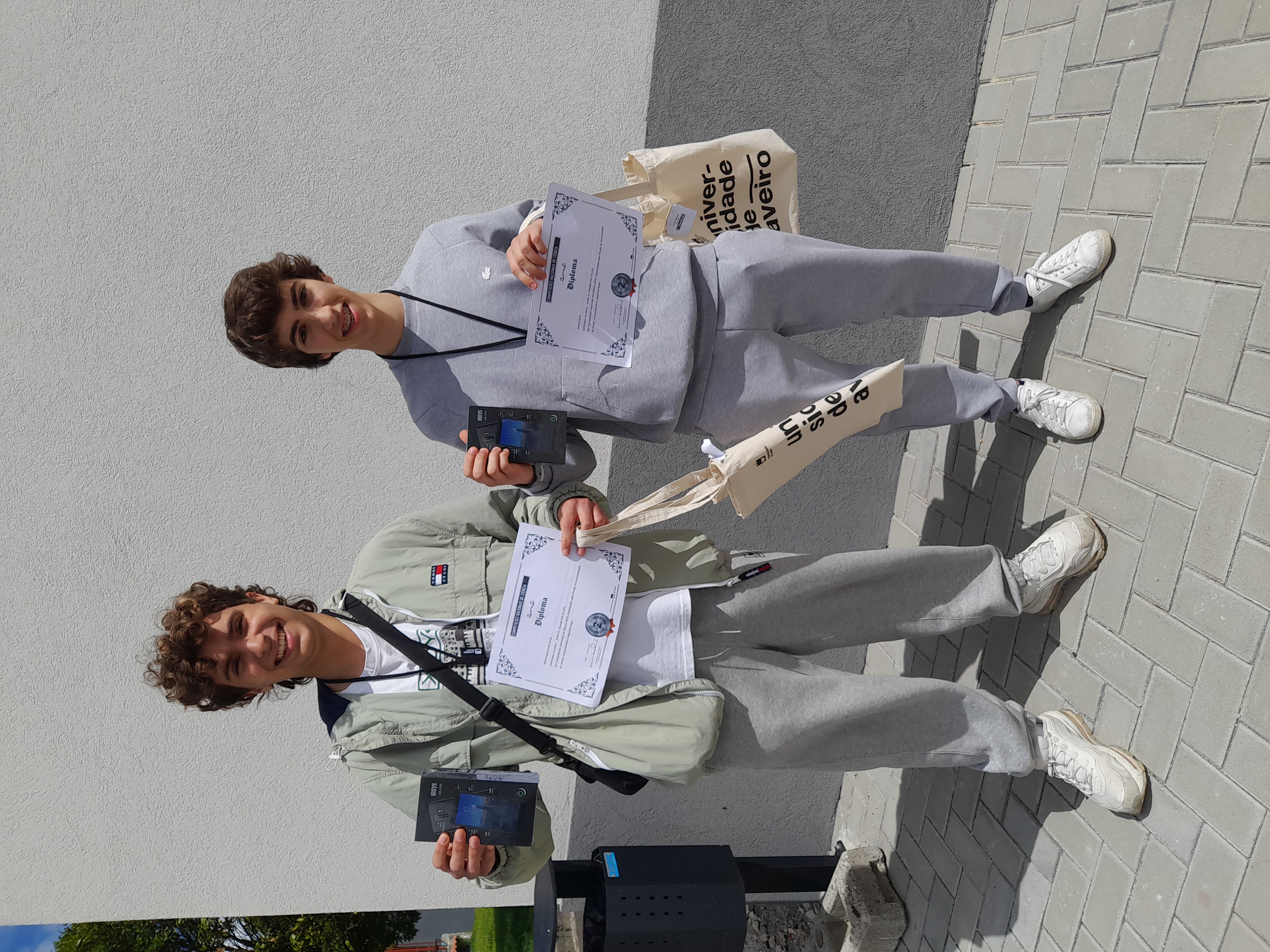 Destaca-se também que os alunos Martim Gomes e Gonçalo Bento , do 12º ano, foram premiados com um telemóvel Android cada, medalha de 2º lugar e respetivo diploma em reconhecimento pelo seu desempenho.