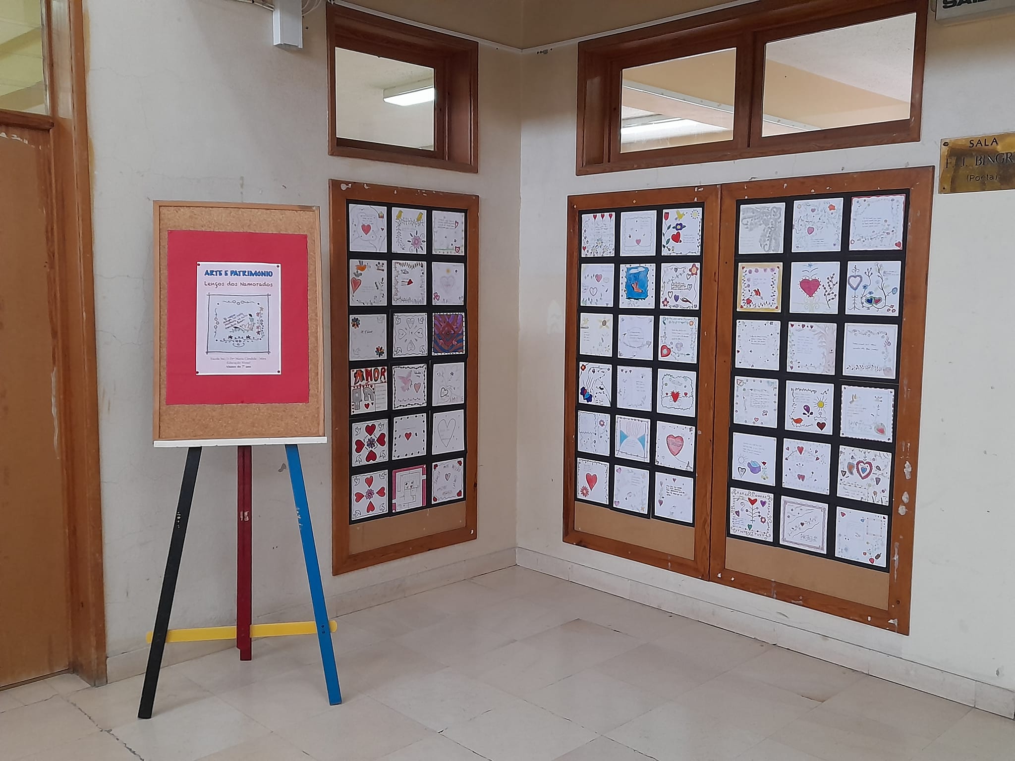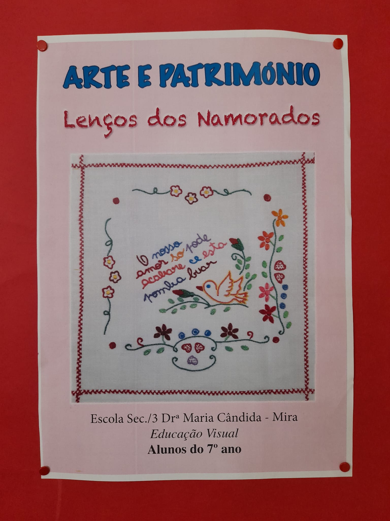 Exposição conjunta dos trabalhos dos alunos dos 7° Anos. alusivo ao Lenço dos Namorados / PatrimónioCultural /Material / Móvel - na Biblioteca da Escola Secundária de Mira.