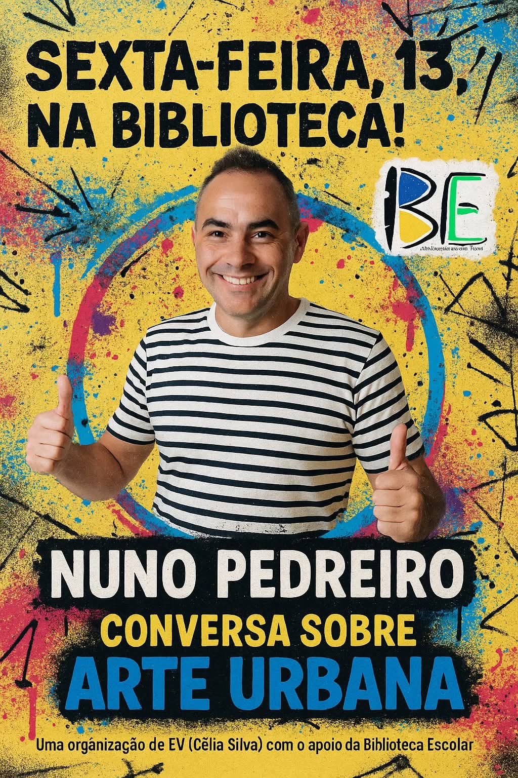 Na aula de Educação Visual, a turma do 8.º B teve uma experiência única: falar diretamente com quem vive e sente a Arte Urbana por dentro. Convidámos o artista Nuno Pedreiro, conhecido pelo seu trabalho criativo e interventivo, para uma conversa inspiradora sobre este movimento artístico.