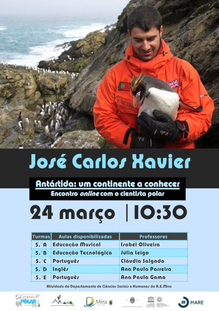 Antártida, um continente a conhecer, será o tema da interação, via zoom, que o cientista polar José Carlos Xavier irá manter com os alunos do 5.º ano, no próximo dia 24 de março, pelas 10h30.