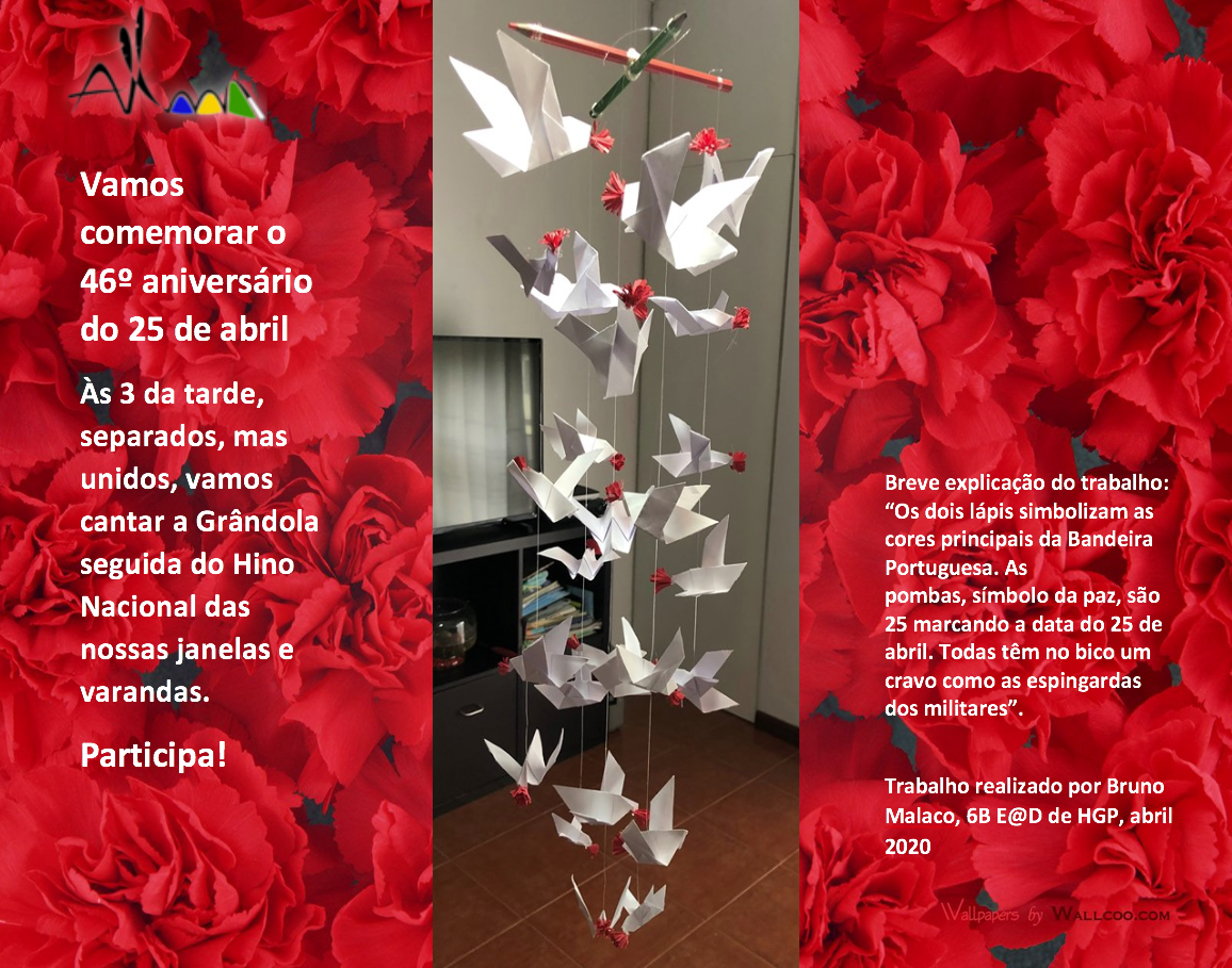 Bruno Malaco, aluno do Agrupamento de Escolas de Mira, realizou o seu trabalho de História e Geografia de Portugal em E@D (Ensino a Distância), onde propõe que, neste 25 de abril às 15h, todos cantem "Grândola, Vila Morena" seguida do Hino Nacional nas nossas janelas e varandas.