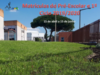 Informam-se os Srs. Encarregados de Educação que o período de matrículas para o Pré-Escolar e 1º Ano de Escolaridade, do próximo ano letivo de 2019/2020, irá decorrer de 15 de abril a 15 de Junho/2019.