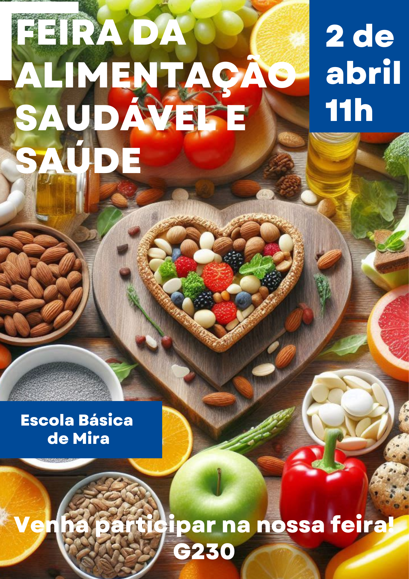No dia 2 de abril, pelas 11h, realizar-se-á, na Escola Básica de Mira, a Feira da Alimentação Saudável e Saúde, dinamizada pelo grupo de Ciências da Natureza/Matemática e, também, com a colaboração especial do Centro de Saúde de Mira, parceiro do Agrupamento.Calendário de matrículas 2025
