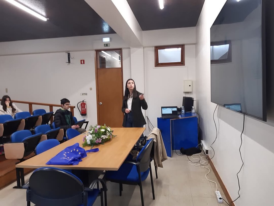 Enquanto atividade promovida pelo Clube Europeu do Agrupamento de Escolas de Mira, hoje foi dia de recebermos dois elementos da Europedirect de Coimbra e Leiria que dinamizaram uma sessão informativa e lúdica, no âmbito da União Europeia. Foram salientados vários aspetos, mormente países e datas de adesão, tratados, órgãos, presidentes, valores e atitudes,entre muitos outros. A tónica recaiu também e, sobretudo, na temática proposta pela DGE ( Unidade de Coordenação dos Clubes Europeus) que, este ano letivo, é: "Diversidade e Inclusão- cidadania europeia num contexto de multiculturalidade".Os 45 alunos membros do Clube mantiveram- se atentos, formularam questões e, no final, exercitaram o jogo da glória respondendo às perguntas de indole europeia, colocadas pela dinamizadora.