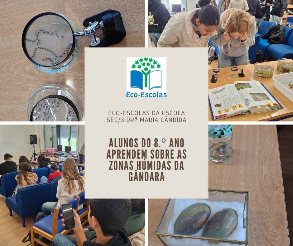 No dia 13 de março de 2025, os alunos das turmas C, D e F do 8.º ano do Agrupamento de Escolas de Mira participaram numa sessão sobre as “Zonas Húmidas da Gândara”, dinamizada por Afonso Petronilho, na Biblioteca Escolar.