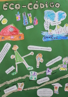 O poster Eco-código representante do Ensino pré-Escolar foi realizado pelo Jardim de Infância dos Carapelhos.