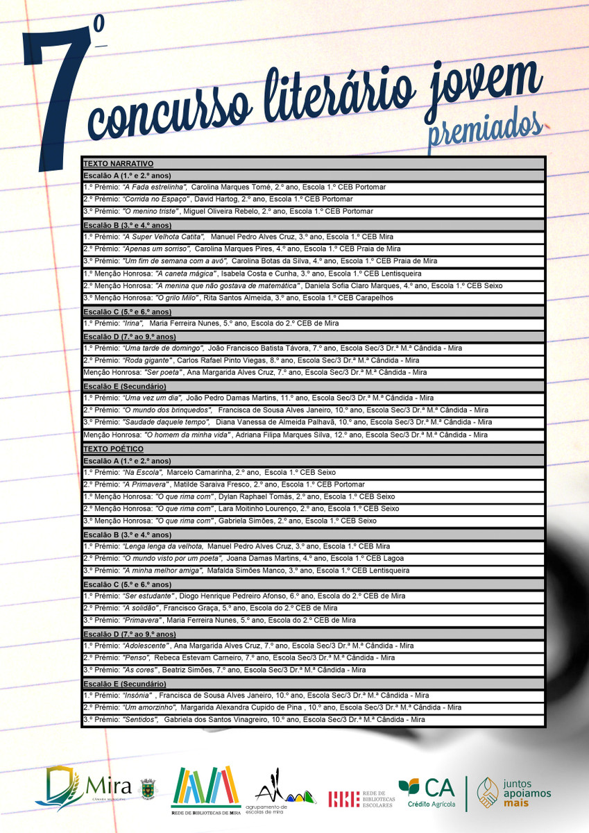 Deu-se início ao 7.º Concurso Literário Jovem, organizado pela Rede de Bibliotecas de Mira em parceria com a Câmara Municipal de Mira e o Agrupamento de Escolas de Mira.