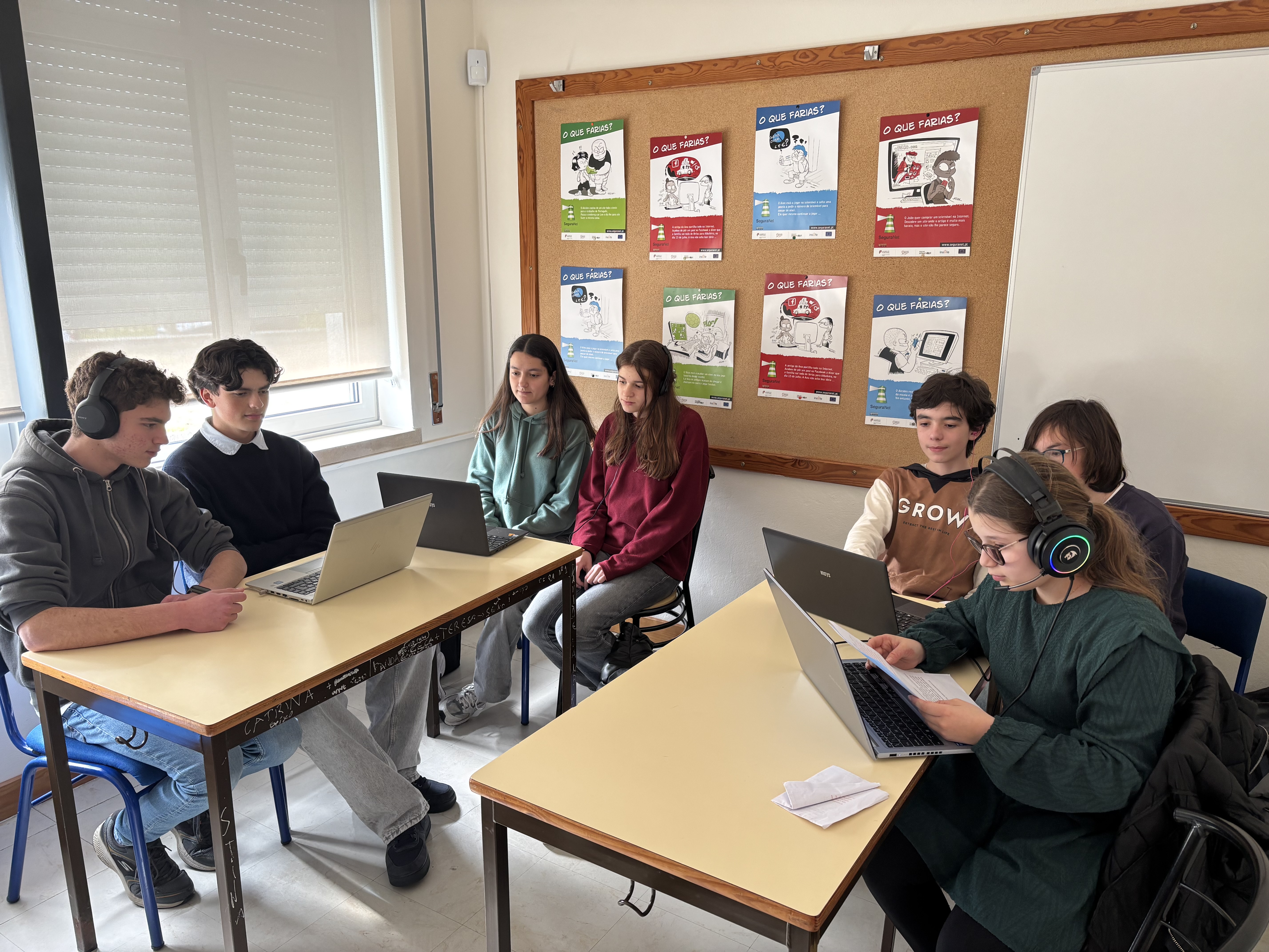 O projeto envolve alunos do 8.º e 9.º anos, que, sob a orientação da professora Ana Leigo, têm a oportunidade de explorar diversas ferramentas digitais, refletir sobre os desafios da era digital e desenvolver estratégias para uma navegação segura e informada. Através de atividades práticas e colaborativas, os estudantes tornam-se agentes de mudança, sensibilizando a comunidade escolar para a importância da literacia digital. Neste contexto, destacam-se os alunos Camila Ferreiro, Gabriel Baptista, Gabriel Teshirogi, João Silva, Joana Pires, José Costa, Gustavo Monteiro e Bárbara Duarte, que assumem um papel ativo na dinamização do projeto e na promoção de boas práticas no uso das tecnologias, consolidando-se como verdadeiros Líderes Digitais dentro e fora da sala de aula.